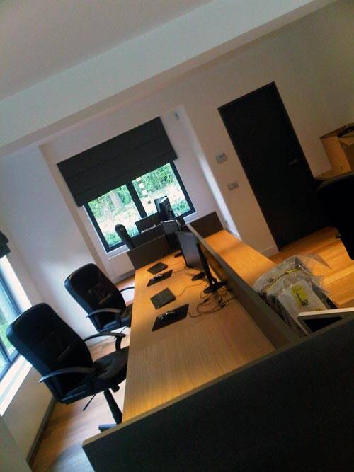Allereerst werd een week of twee geleden gestart aan de werkzaamheden aan onze vergaderzaal. Onze klant Window Place is gespecialiseerd in ramen en werd dus ingeschakeld om twee grote schuiframen te plaatsen in onze “buitenkamer” die helemaal wordt omgetoverd tot een full-on vergaderruimte.